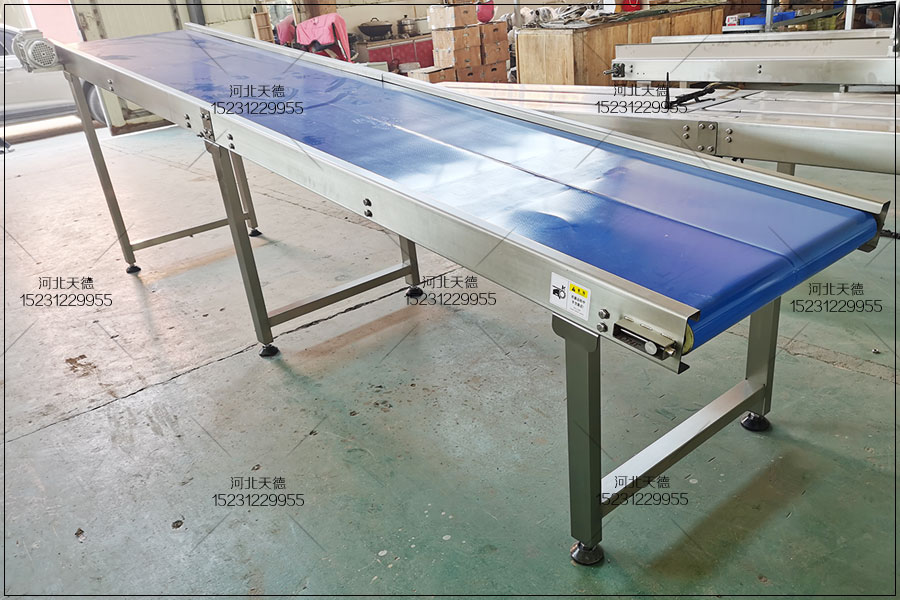 90度轉彎皮帶機 180度皮帶轉彎機機架有以下幾種材質:碳鋼、鋁型材、不銹鋼201/304. 皮帶輸送機技術參數:皮帶輸送帶寬度(mm) 輸送長度(m)電機、變頻器/功率(KW) 輸送速度(m/s) 輸送量 (t/h) 雙層皮帶輸送機是為了省空間,將兩臺或多臺皮帶輸送線進行上下層布置,實現雙倍輸送效果,皮帶輸送機由兩個端點滾筒與緊套其上的閉合轉彎輸送帶組成。帶動輸送帶轉動的滾筒稱為驅動滾筒(傳動滾筒);另一個僅在于改變轉彎輸送帶運動方向的滾筒稱為改向滾筒。驅動滾筒由電動機通過減速器驅動,轉彎輸送機輸送帶依靠驅動滾筒與輸 送帶之間的摩擦力拖動。驅動滾筒都裝在卸料端,以增加牽引力,方便進行拖動。物料由喂料端進入,落在轉動的轉彎輸送帶上,依據輸送帶摩擦帶動輸送到卸料端卸出。