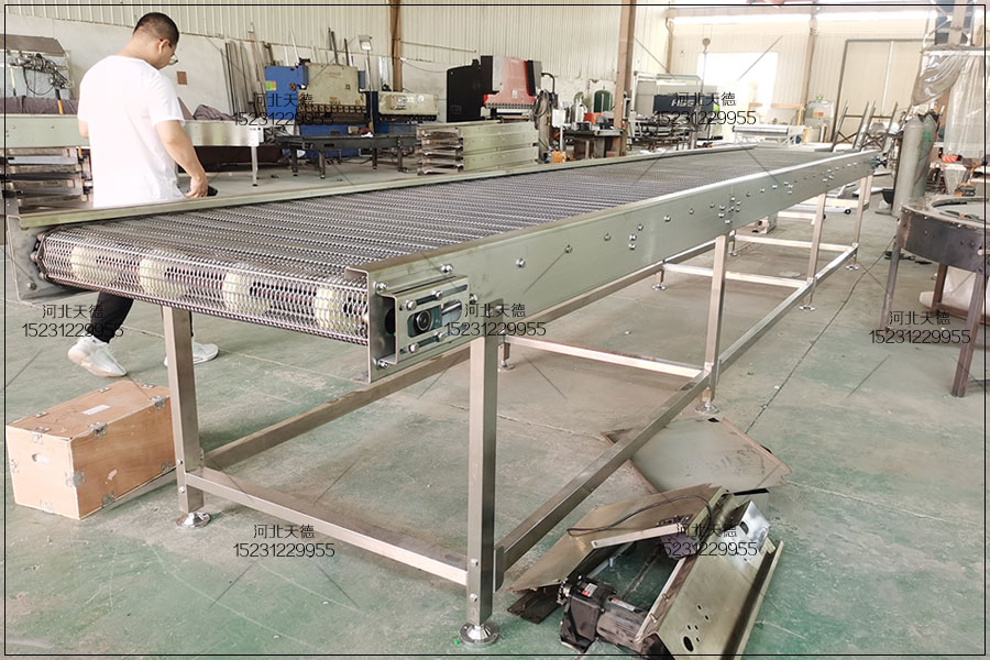 網帶輸送機在實際的生產應用中,具有很多優點,它輸送量大,承重能力強,適合整狀及散狀的物料輸送。并且網帶輸送機具有 結構簡單,運行穩定的特點,在工業化生產的進行中起著具足輕重的作用。網帶輸送機輸送量大,運距長,對線路適應性強,可靠性高。