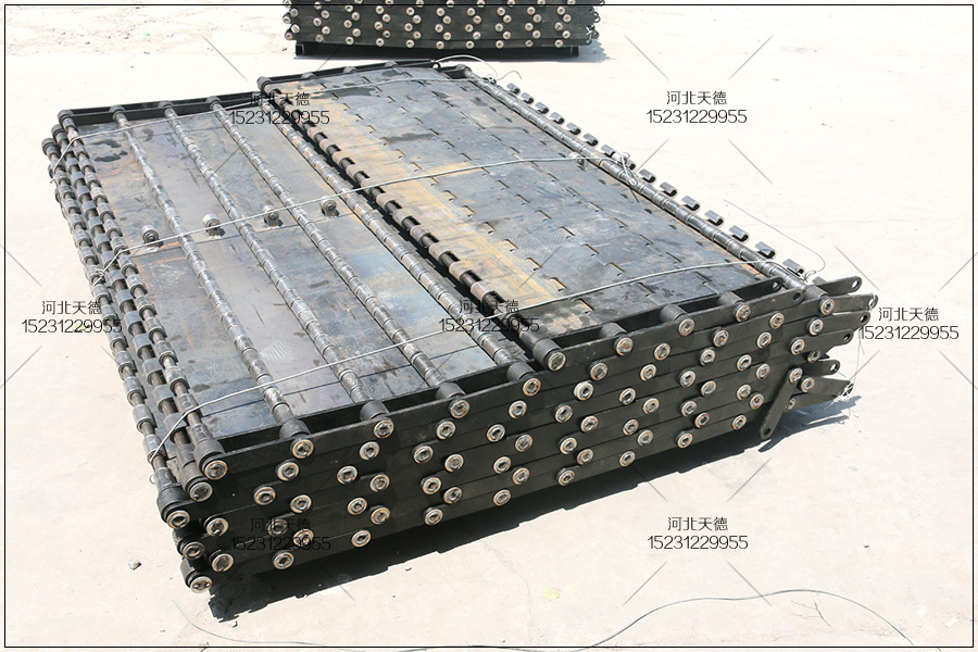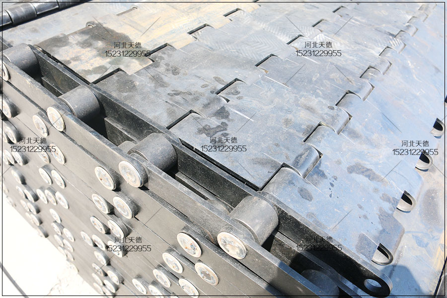 這個是張家口的客戶定制的,用來傳送金屬廢料使用,安裝在大型的重型設(shè)備中,需要加厚板加工,承載為載重鏈板輸送帶。