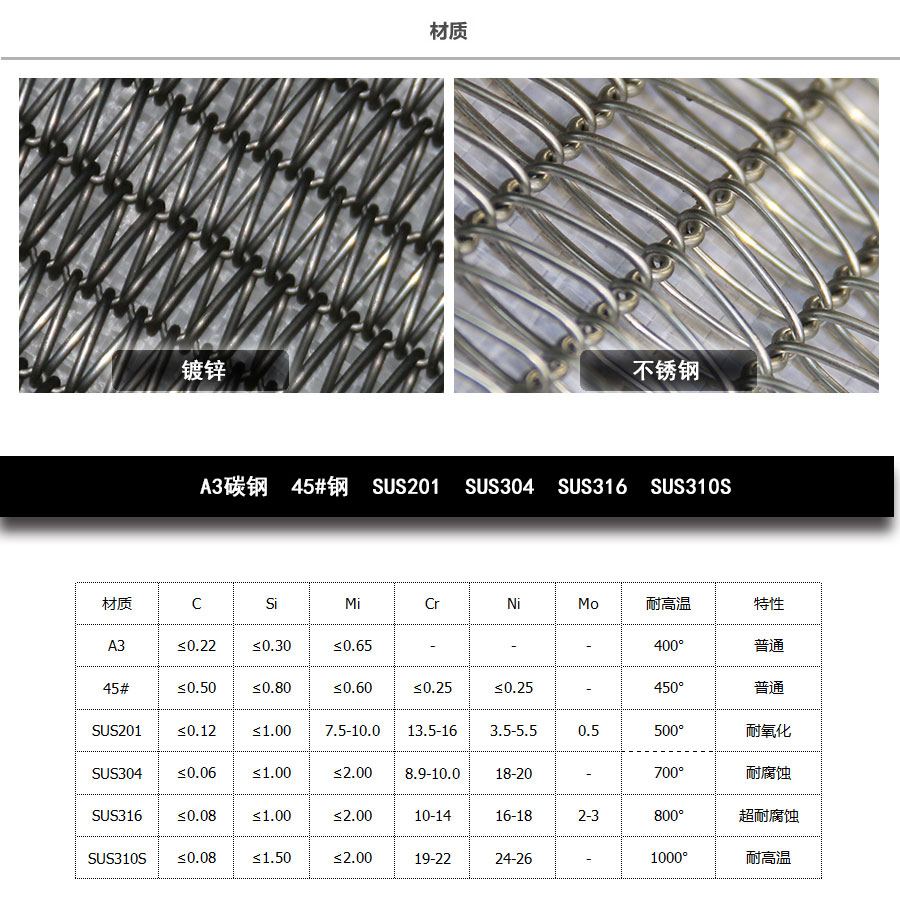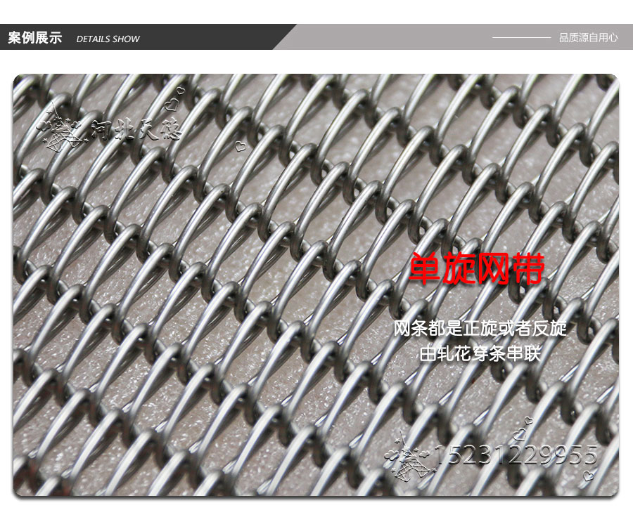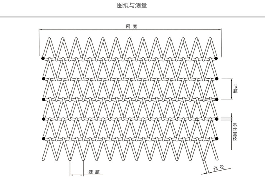曲軸型:集中了金屬絲編織網(wǎng)帶的各種優(yōu)點,由于具有彎曲較深的串條,使各個螺旋盤條的位置正確的定位,因此減少網(wǎng)帶的變型和延伸。