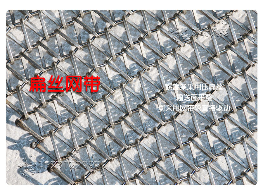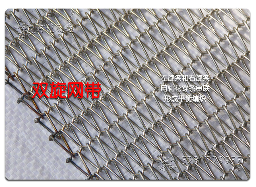 螺旋網(wǎng)帶:使用曲軸或直軸串條將左旋和右旋繞絲串起來形成平衡編織。